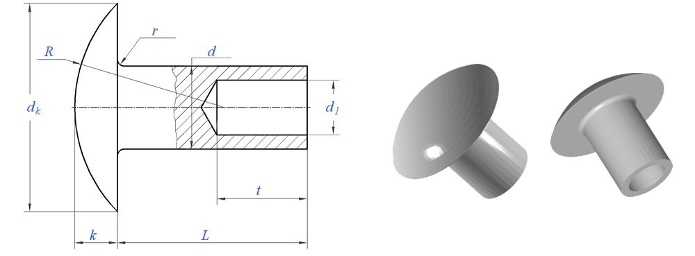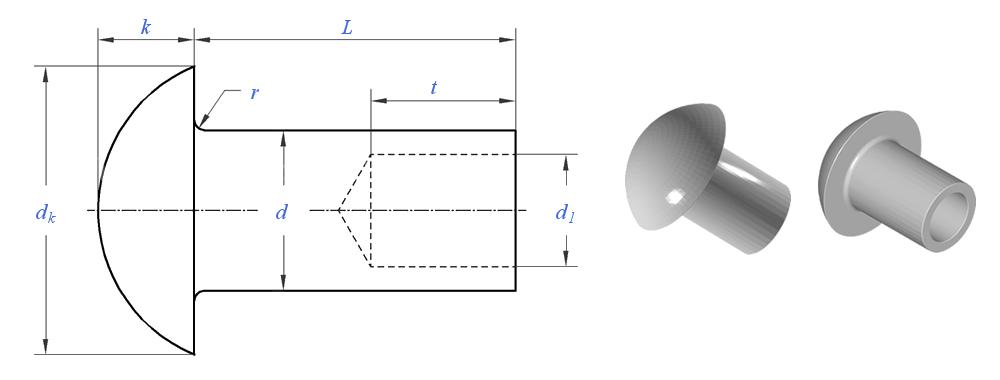 A rebite semi-tubulares da cabeça redonda é uma espécie de rebite com uma cabeça arredondada em forma de cúpula e uma haste parcialmente oca.