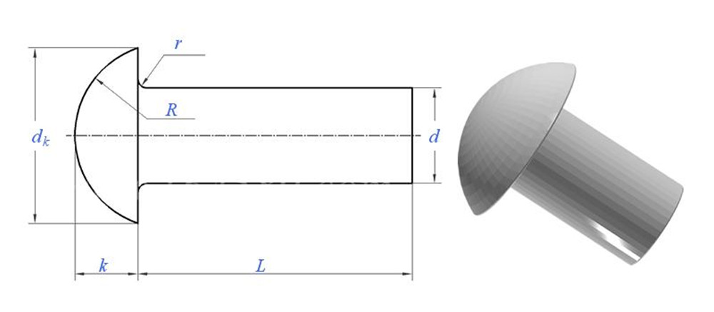 A rebite sólido da cabeça redonda é um tipo de rebite com uma cabeça arredondada ou em forma de cúpula e uma haste sólida.