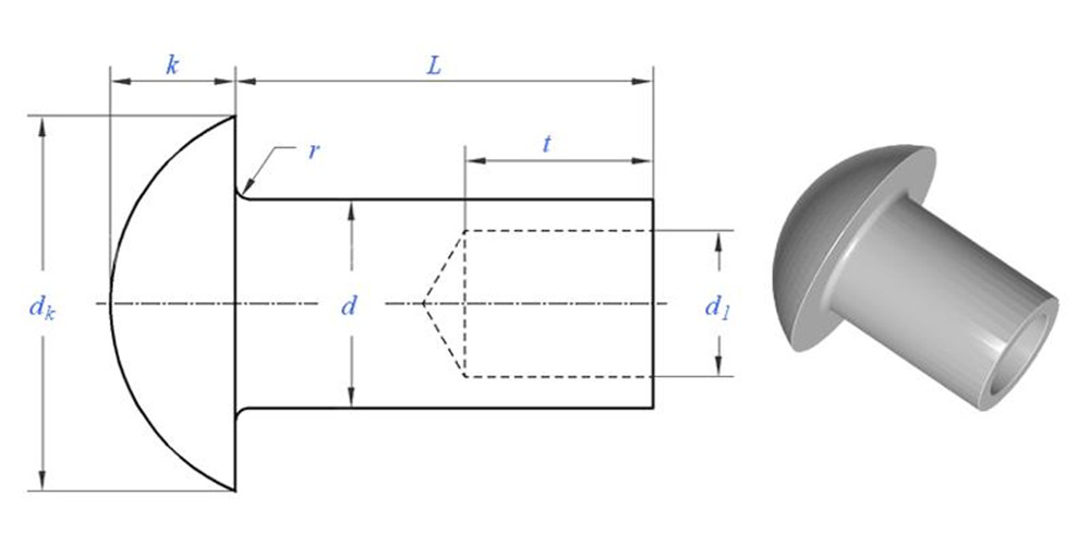 A rebite semi-tubulares da cabeça de cogumelos Apresente uma cabeça larga e arredondada que fornece uma grande superfície de rolamento, distribuindo a carga e reduzindo a deformação do material.