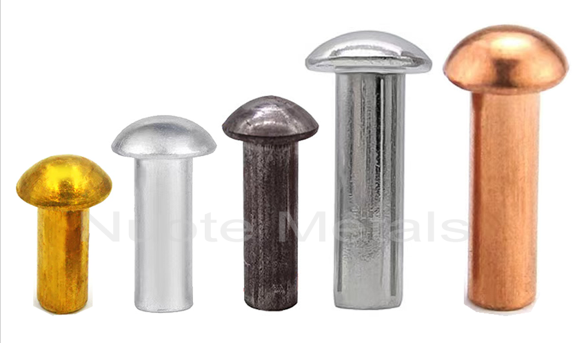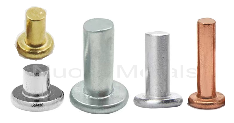 Rebites sólidos de cabeça plana Em material diferente, como latão, aço (ferro), aço inoxidável, alumínio, cobre.