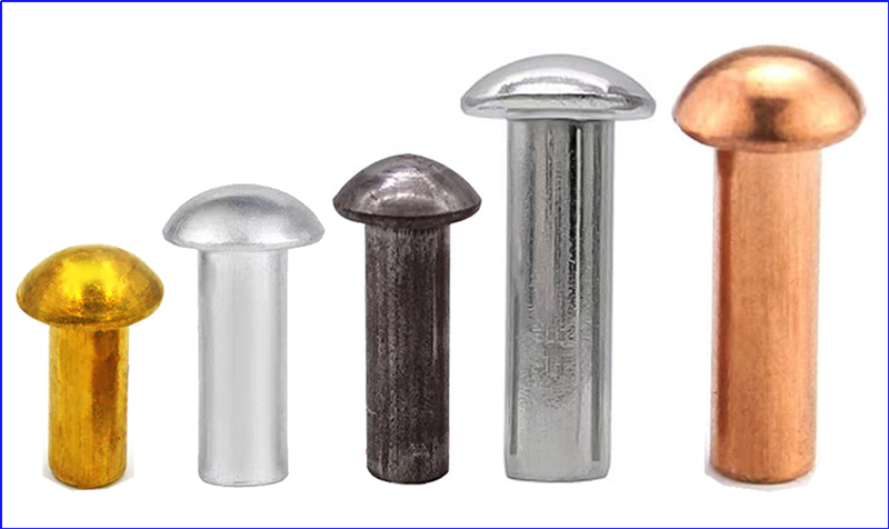 Um rebite sólido consiste em uma haste cilíndrica com uma cabeça de rebite em uma extremidade e uma cauda de rebite na outra. É um fixador mecânico usado para unir permanentemente duas ou mais peças de material. Os rebites sólidos são normalmente feitos de materiais como aço, alumínio, latão ou cobre e aço inoxidável. A cabeça do rebite desempenha um papel crucial no processo de instalação, fornecendo uma superfície impressionante e protegendo os materiais. Rivetes sólidos estão disponíveis em diferentes estilos de cabeça, cada um projetado para atender a aplicações específicas e preferências estéticas.