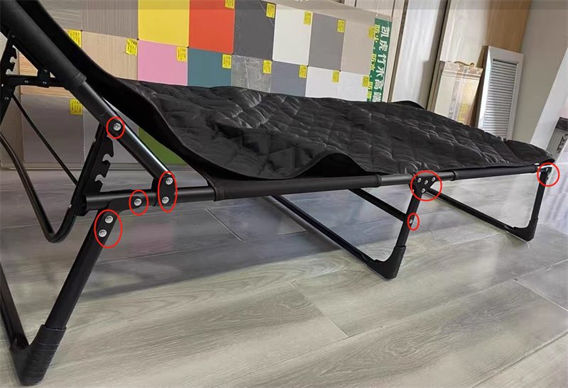 Um exemplo do aplicativo Rivets éRebites semi-tubulares Aplicado para a cama dobrável, assim como abaixo da foto.
