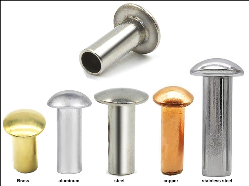 Common materials for semi-tubular rivets include aluminum, copper, steel, and stainless steel. Aluminum rivets are lightweight and corrosion-resistant, making them suitable for electronic devices; steel rivets are stronger and are often used in load-bearing structures. Compared to solid rivets, semi-tubular rivets are lighter but have slightly lower shear strength. Compared to full tubular rivets, their curled tails provide a larger contact area, resulting in a more stable connection.
