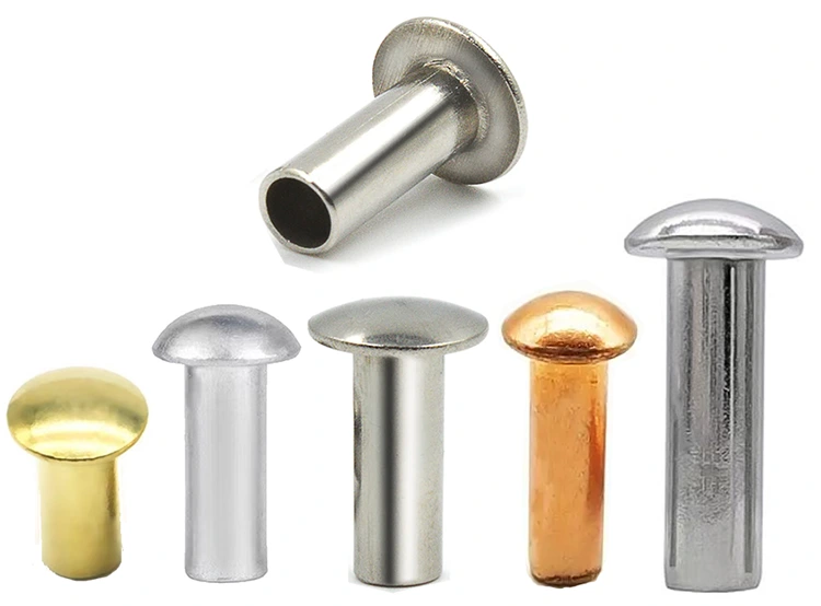 O design de cabeça plana e arredondada permite que o rebite de cabeça universal fique nivelado com a superfície da peça após a instalação, minimizando a saliência e tornando-o adequado para aplicações que exigem uma superfície lisa. Os materiais comuns dos rebites de cabeça universal incluem cobre, aço e alumínio.Rebites de cobre oferecem excelente condutividade e resistência à corrosão, tornando-os adequados para equipamentos eletrônicos e aplicações decorativas;rebites de açooferecem alta resistência, tornando-os adequados para máquinas pesadas; erebites de alumíniosão leves, tornando-os adequados para as indústrias de aviação e automotiva. A instalação normalmente é realizada com uma ferramenta de rebitagem, que é simples e eficiente.